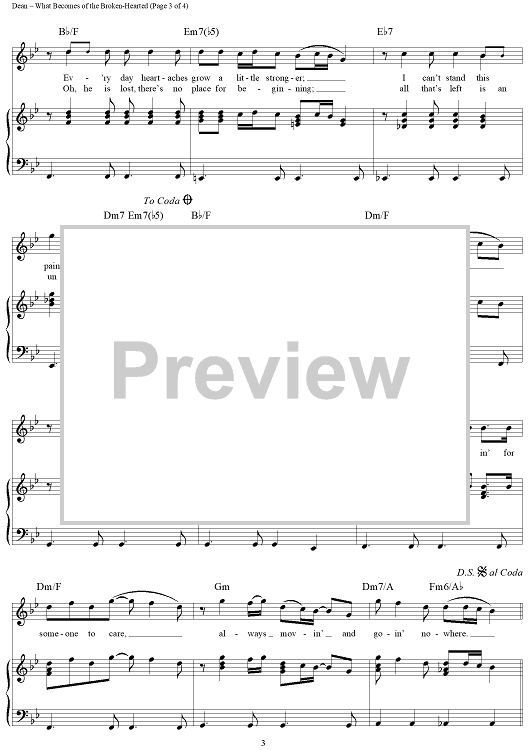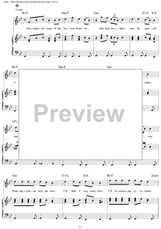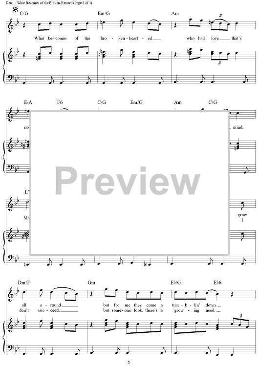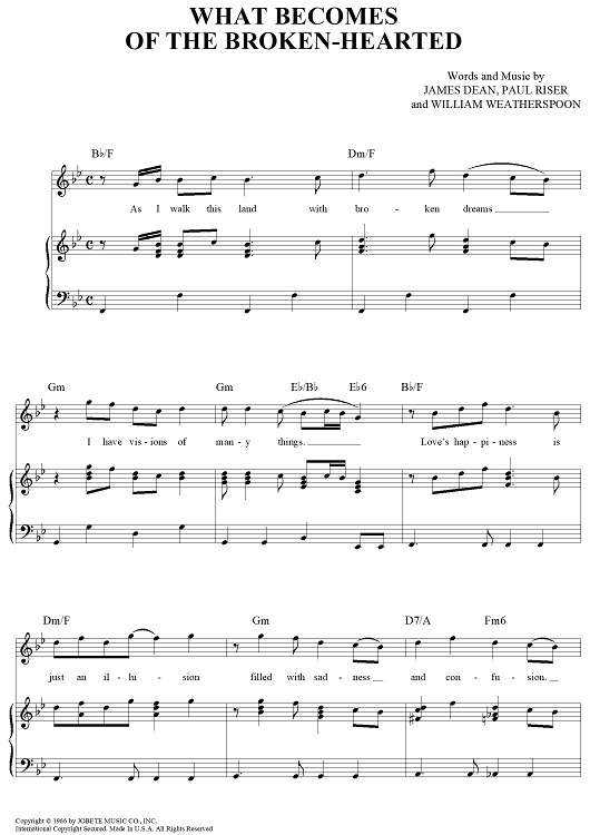 Digital Sheet Music for What Becomes of the Broken-Hearted by James Dean, William Weatherspoon, Paul Riser, Jimmy Ruffin scored for Piano/Vocal/Chords; id:271708