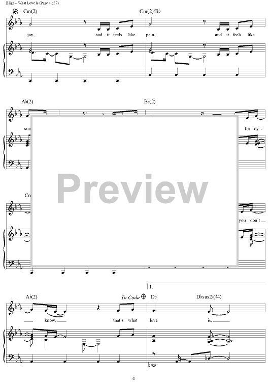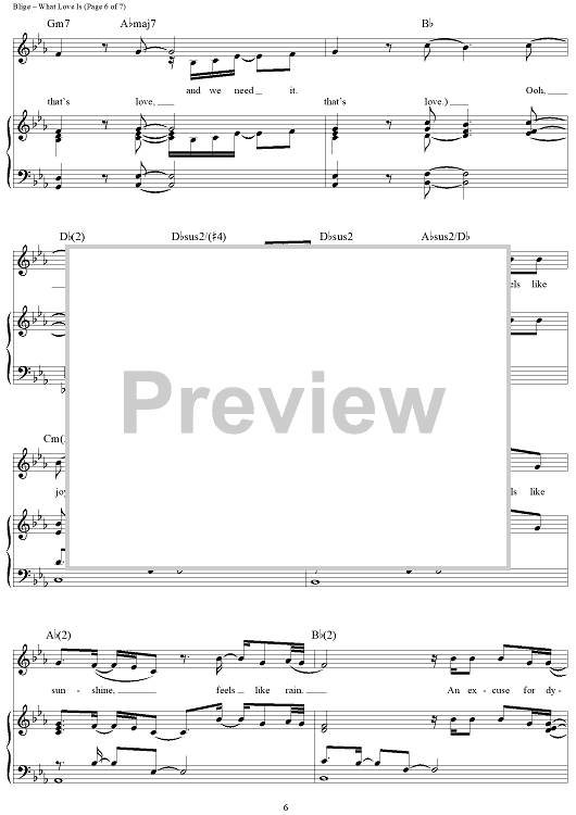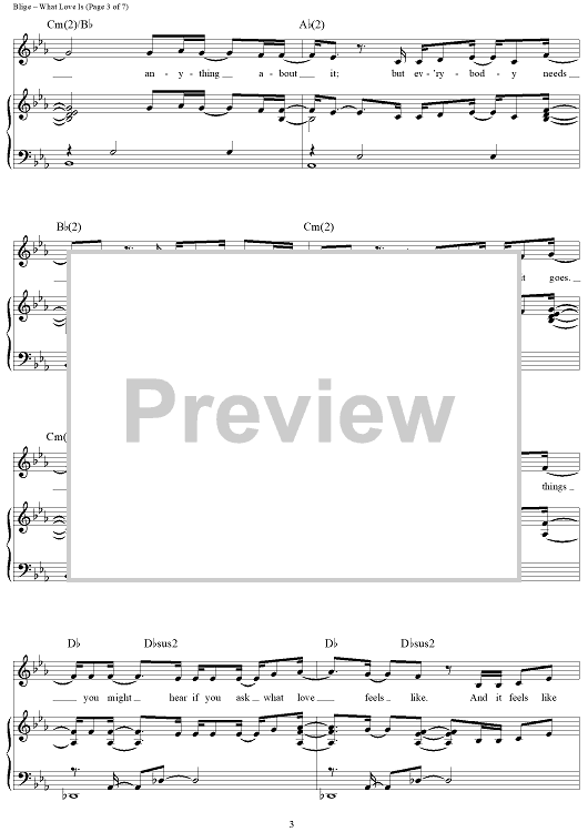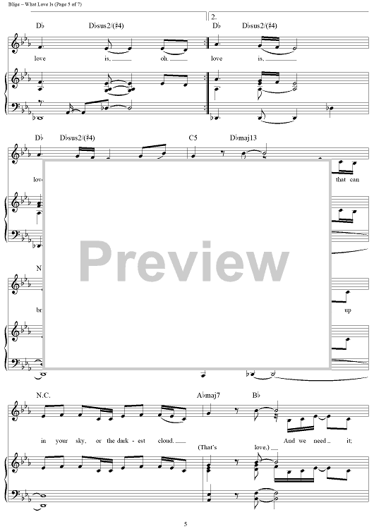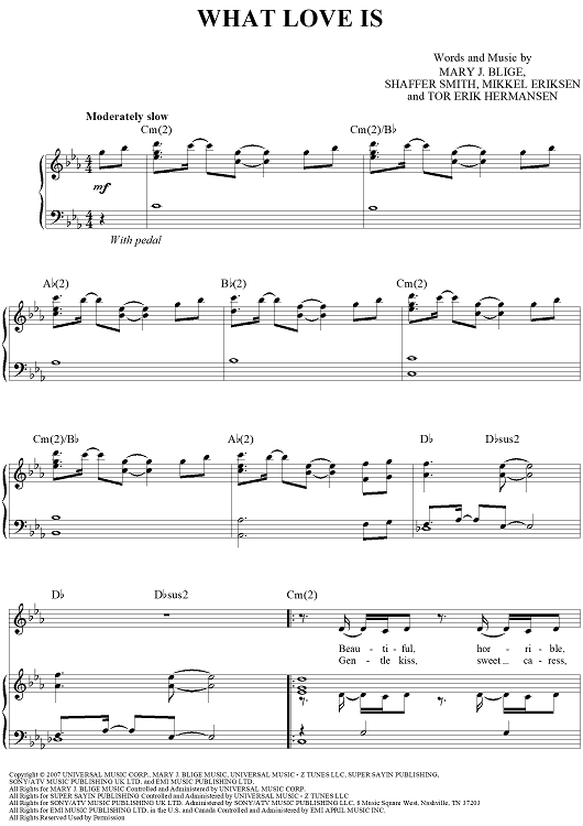 Digital Sheet Music for What Love Is by Mary J. Blige, Shaffer Smith scored for Piano/Vocal/Chords; id:409901