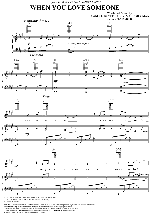 Digital Sheet Music for When You Love Someone by Carole Bayer Sager, Marc Shaiman, Anita Baker, James Ingram scored for Piano/Vocal/Chords; id:120725