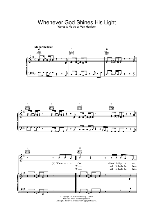 "Whenever God Shines His Light" Sheet Music by Van Morrison