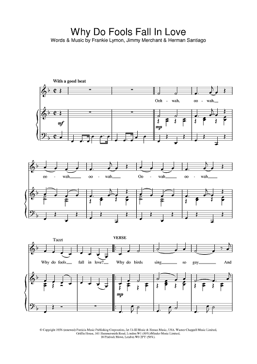 Digital Sheet Music for Why Do Fools Fall In Love? by Morris Levy, Frankie Lymon, Frankie Lymon and the Teenagers scored for Piano/Vocal/Chords; id:379604