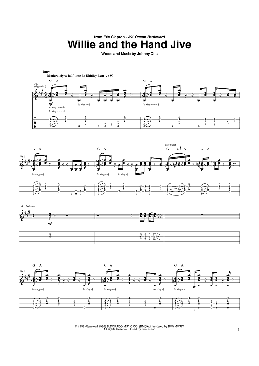 Digital Sheet Music for Willie And The Hand Jive by Eric Clapton, Johnny Otis scored for Guitar Tab; id:372633