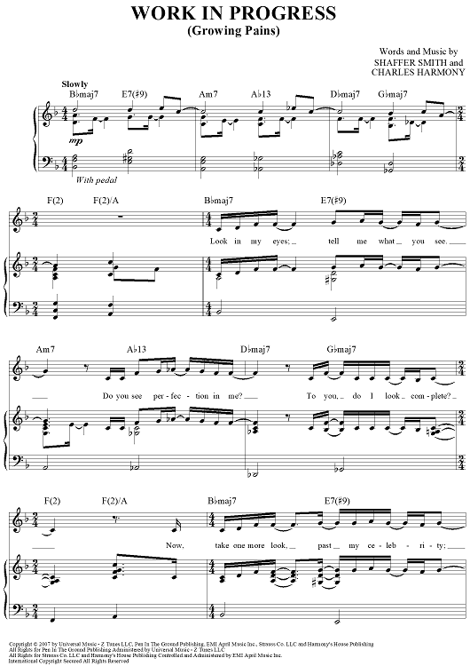 Digital Sheet Music for Work In Progress (Growing Pains) by Mary J. Blige, Shaffer Smith, Charles Harmony scored for Piano/Vocal/Chords; id:410478