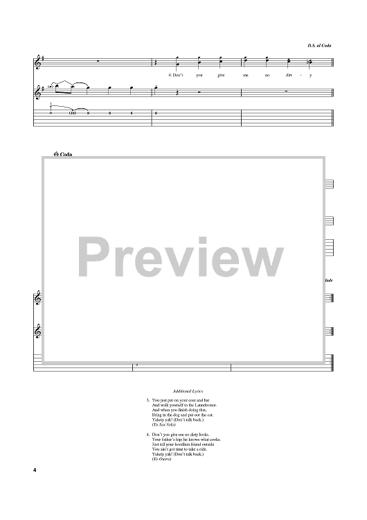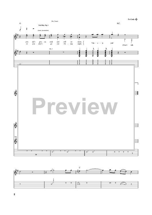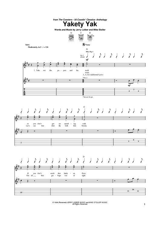 Digital Sheet Music for Yakety Yak by Jerry Leiber, Mike Stoller, The Coasters scored for Guitar Tab; id:381444