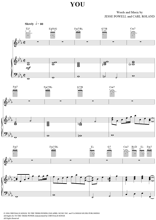Digital Sheet Music for You by Jesse Powell, Carl Roland scored for Piano/Vocal/Chords; id:114035