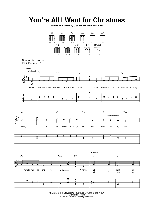 Digital Sheet Music for You're All I Want For Christmas by Bing Crosby, Brook Benton, Glen Moore, Seger Ellis scored for Easy Guitar Tab; id:375036
