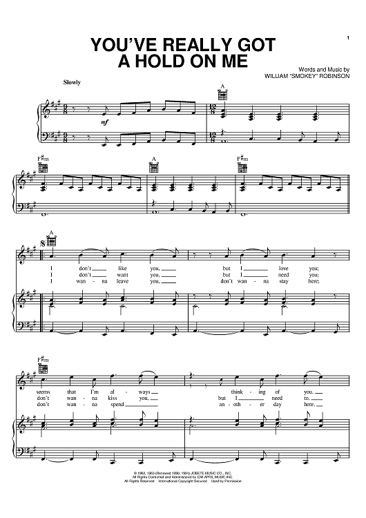 Digital Sheet Music for You've Really Got A Hold On Me by The Beatles, Smokey Robinson, The Miracles scored for Piano/Vocal/Chords; id:370547