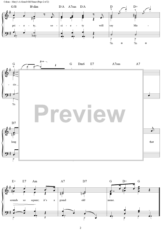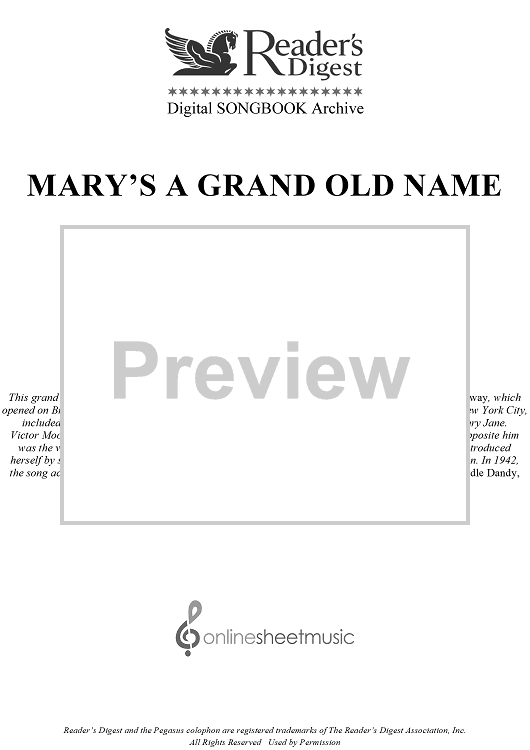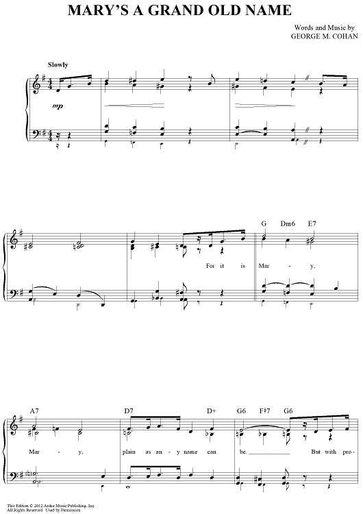 Digital Sheet Music for Mary's A Grand Old Name by George M Cohan scored for Easy Piano/Vocal/Chords; id:433097