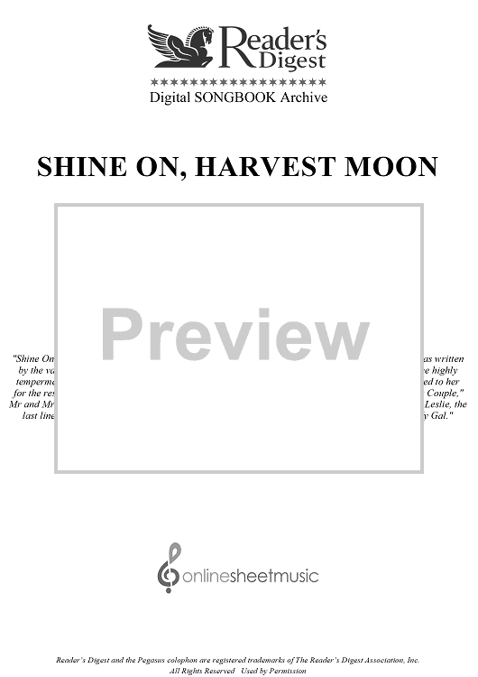 Digital Sheet Music for Shine On, Harvest Moon by Nora Bayes, Jack Norworth scored for Easy Piano/Vocal/Chords; id:433106