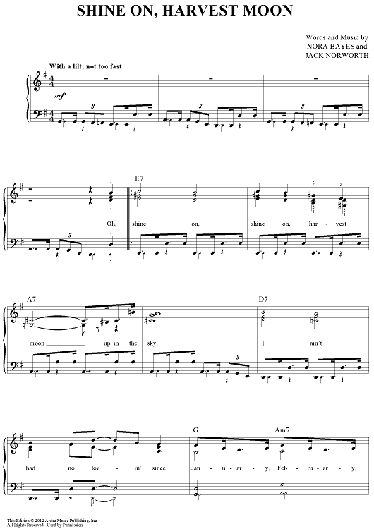 "Shine On, Harvest Moon" Sheet Music by Nora Bayes