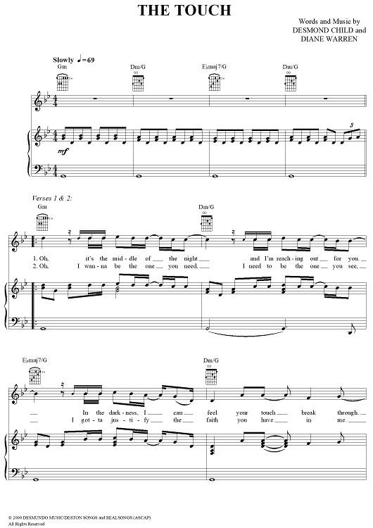 Digital Sheet Music for The Touch by Diane Warren, Desmond Child, Ricky Martin scored for Piano/Vocal/Chords; id:288279