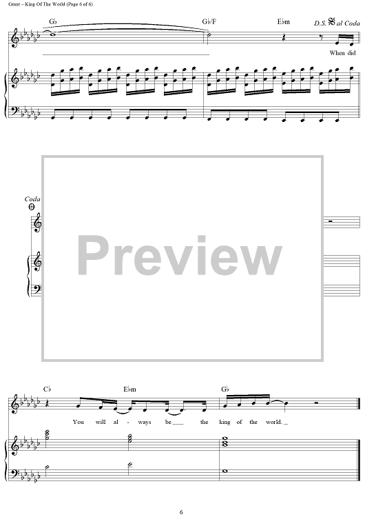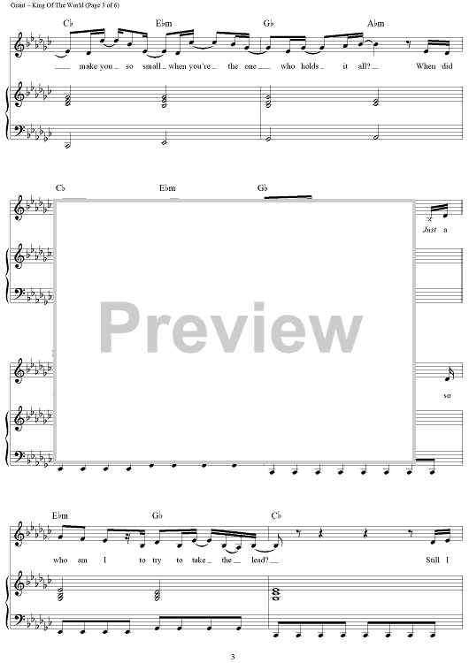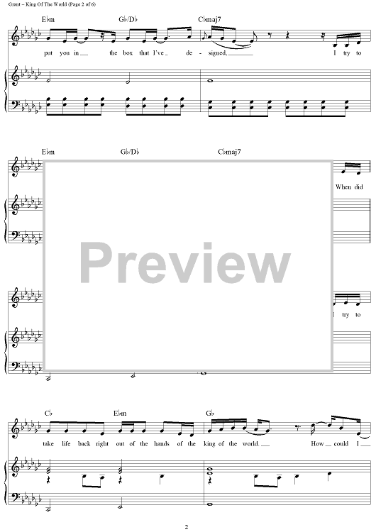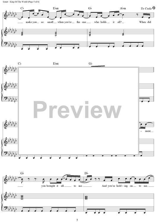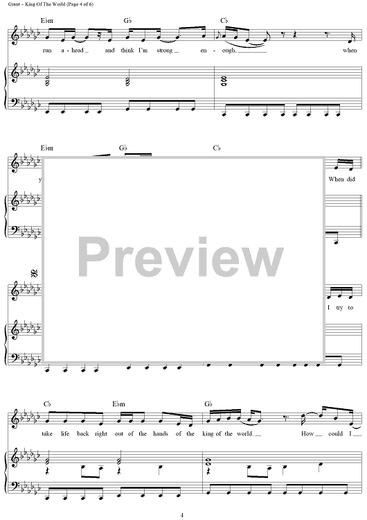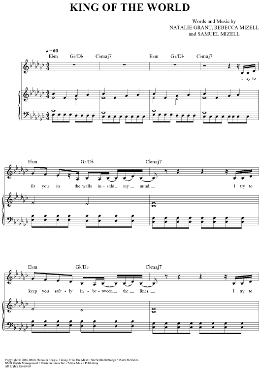 Digital Sheet Music for King Of The World by Natalie Grant, Rebecca Mizell, Samuel Mizell scored for Piano/Vocal/Chords; id:462428