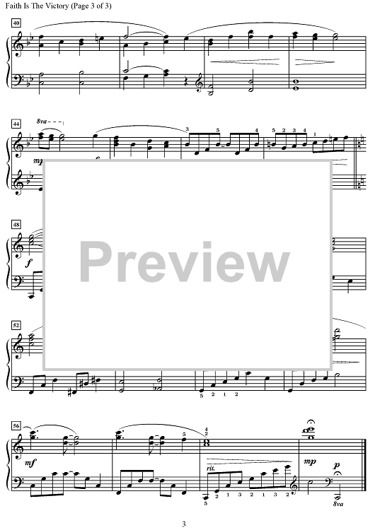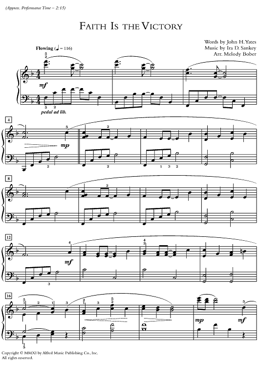 Digital Sheet Music for Faith Is the Victory by Ira D. Sankey, Melody Bober, John H. Yates scored for Piano Solo; id:502017