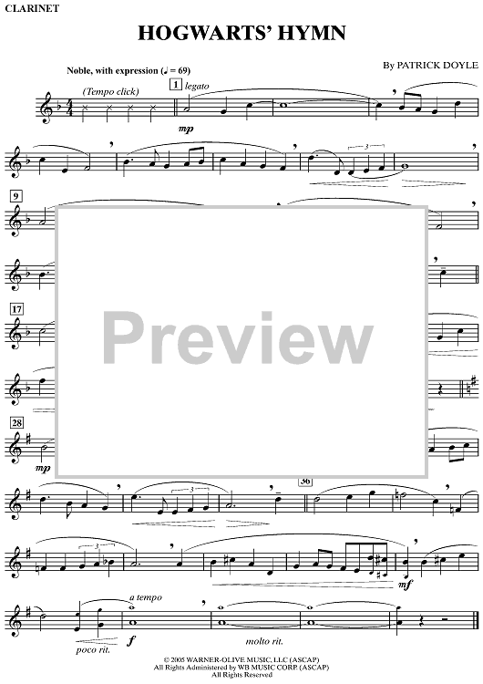 Digital Sheet Music for Hogwarts' Hymn by Patrick Doyle scored for Clarinet/Piano; id:498088