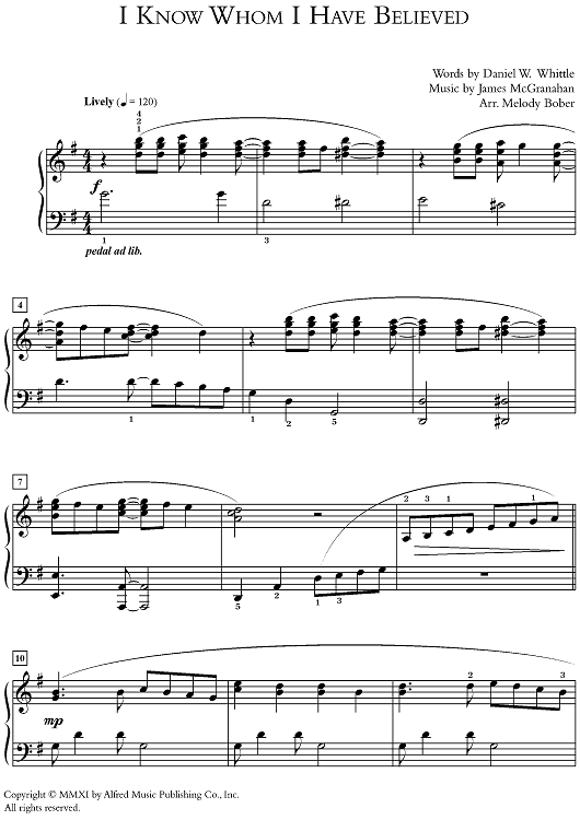 Digital Sheet Music for I Know Whom I Have Believed by James McGranahan, Daniel W. Whittle, Melody Bober scored for Piano Solo; id:502021