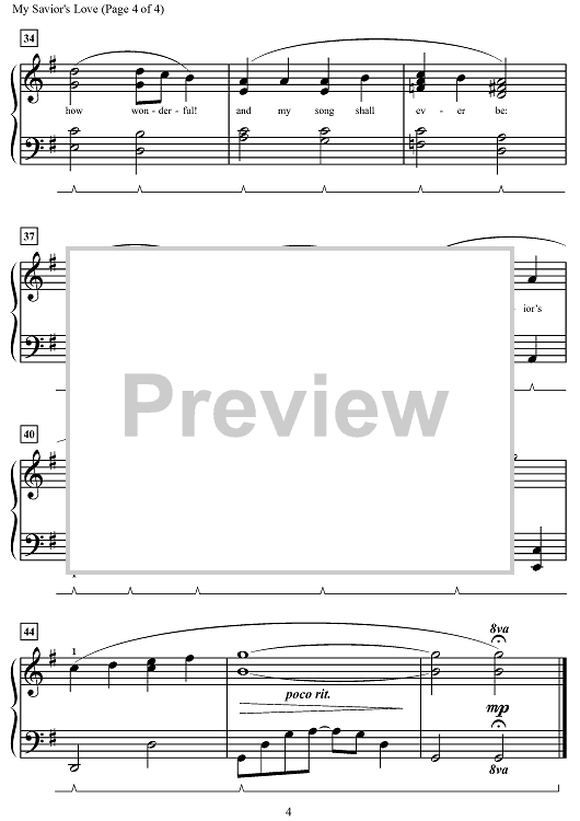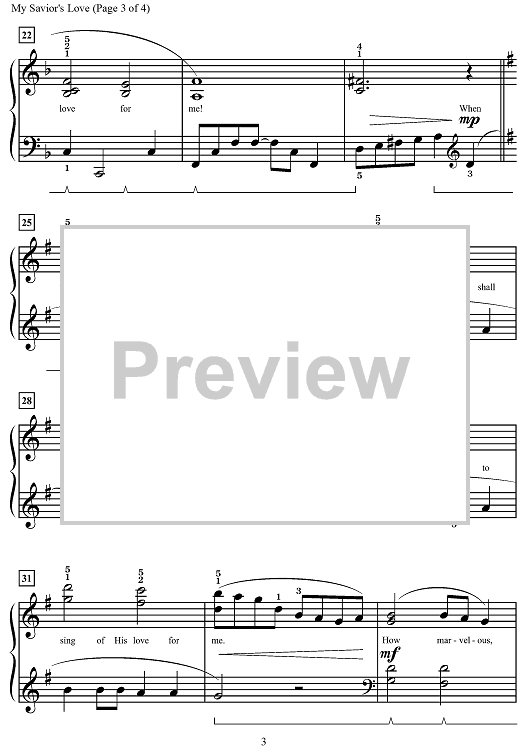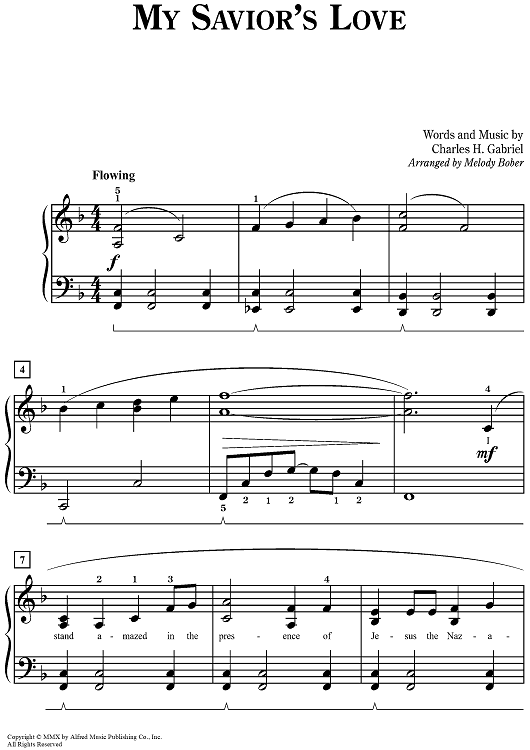Digital Sheet Music for My Savior’s Love by Charles H. Gabriel, Melody Bober scored for Piano; id:498202