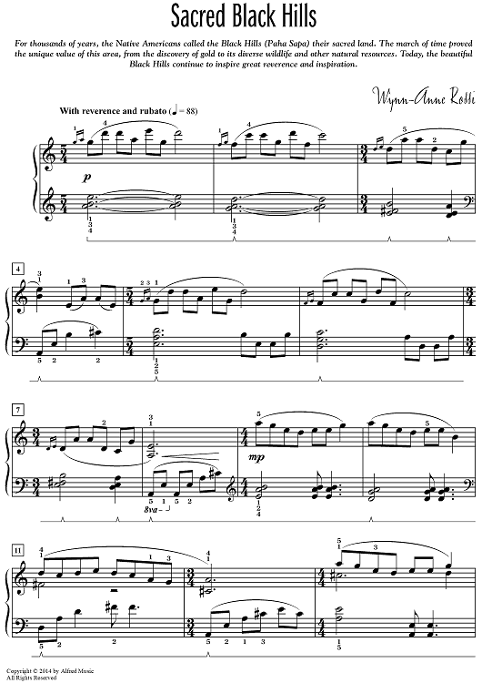 Digital Sheet Music for Sacred Black Hills by Wynn-Anne Rossi scored for Piano; id:469705