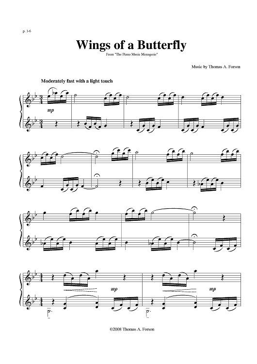 "Wings of a Butterfly" Sheet Music by Thomas A. Forson