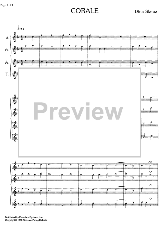 Digital Sheet Music for Corale by Dina Slama scored for 4 Recorders; id:334029