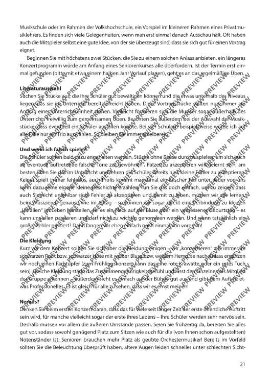 „Senioren musizieren: Blockflöte" ist ein behutsamer Lehrgang für ältere Menschen, die bisher noch nie ein Instrument gespielt haben oder nach sehr langer Pause wieder einsteigen möchten. Musizieren, egal auf welchem Niveau, ist eine ideale Betätigung und das in jedem Alter. Musizieren regt den Geist an, erfreut die Seele und schafft darüber hinaus die Möglichkeit, gemeinsam mit anderen etwas zu tun und zu erleben, was motiviert und das Leben bereichert. Dieser „Leitfaden“ gibt wertvolle Tipps für den Unterricht mit Senioren. Er soll nicht nur Flötenlehrern eine Hilfestellung bieten, sondern auch ambitionierten Laienmusikern, Kirchenmusikern oder Hobbyblockflötisten in Pflegeberufen Mut machen, sich an die musikalische Arbeit mit Senioren zu wagen. Neben Erläuterungen zum Umgang mit dem Lehrwerk und ergänzenden Übungen, bietet die Autorin Barbara Hintermeier in diesem Heft auch Einblicke in ihre persönlichen Erfahrungen.