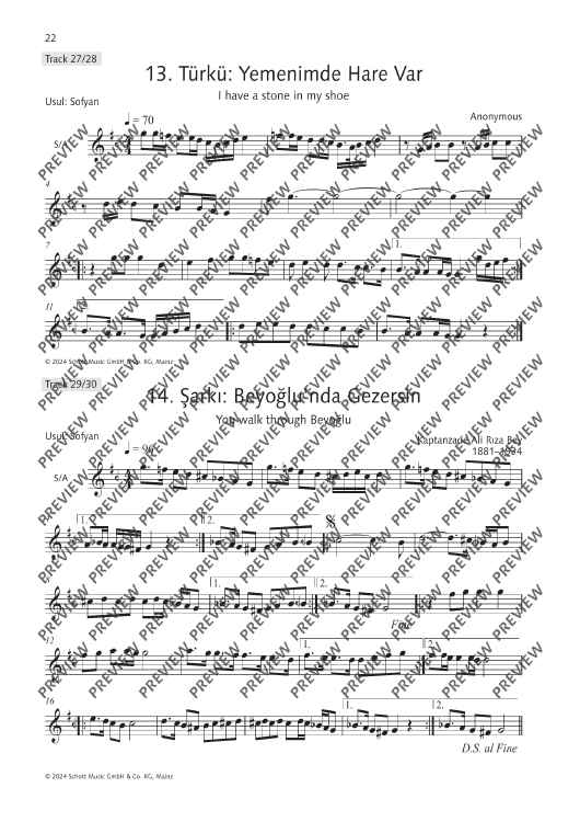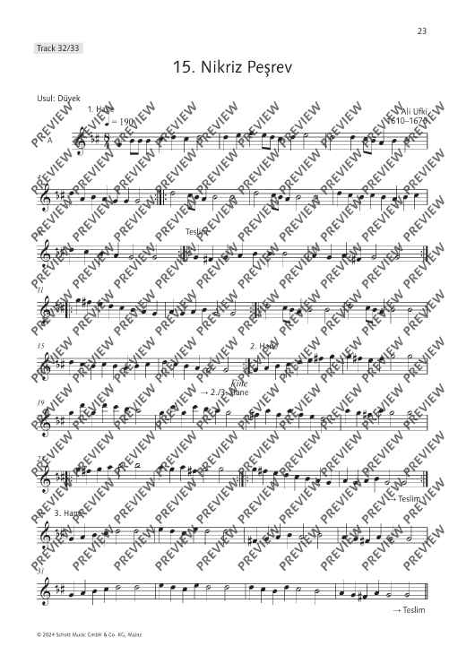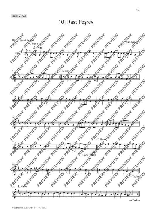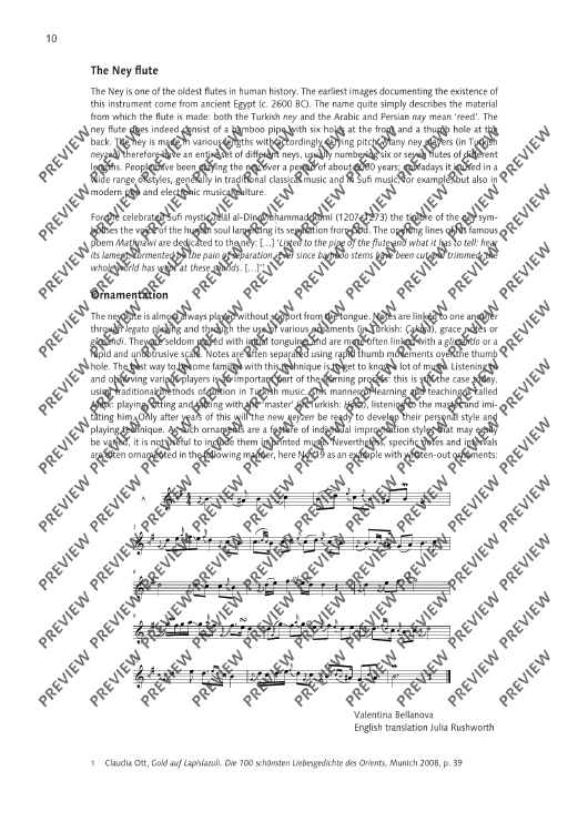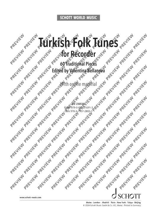 Immerse yourself in the Turkish world of melodies, which are transferred here from singing or the ney, the traditional Turkish wind instrument, to the recorder (soprano and alto). Traditional melodies are accompanied by classical Ottoman and modern melodies. Specialist Valentina Bellanova provides a basic introduction to the Turkish music system and the way it is played. For example, you will learn to play quarter notes and become familiar with the most important melodic and rhythmic modes. Bellanova also provides high-quality reference recordings for all pieces on both the recorder and the ney.