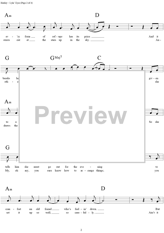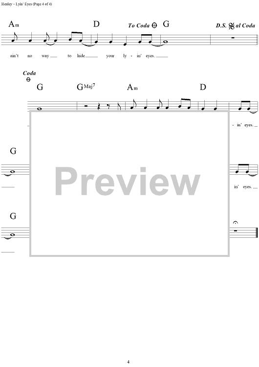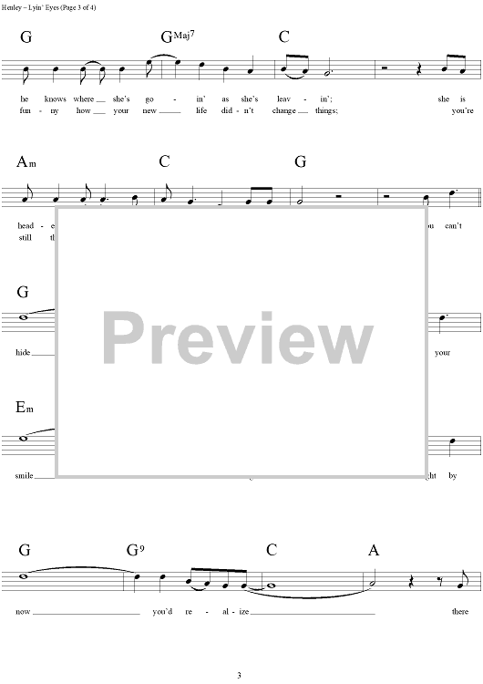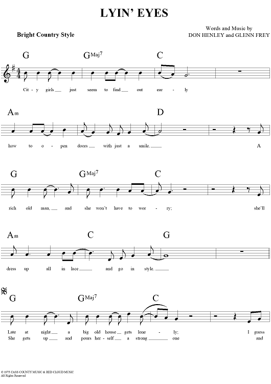 Digital Sheet Music for Lyin' Eyes by Don Henley, Glenn Frey, Eagles scored for Lead Sheet; id:111780