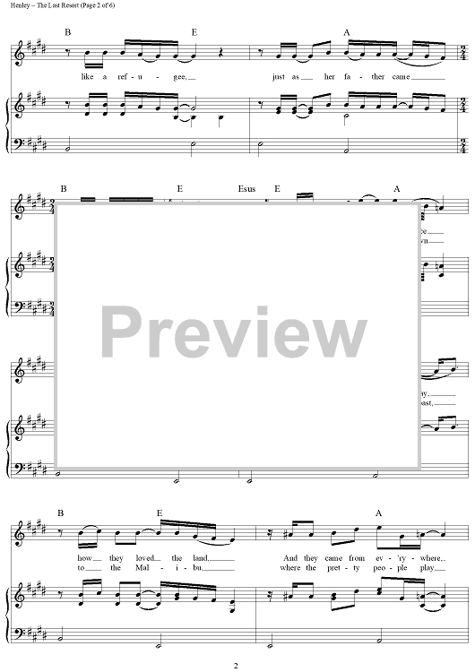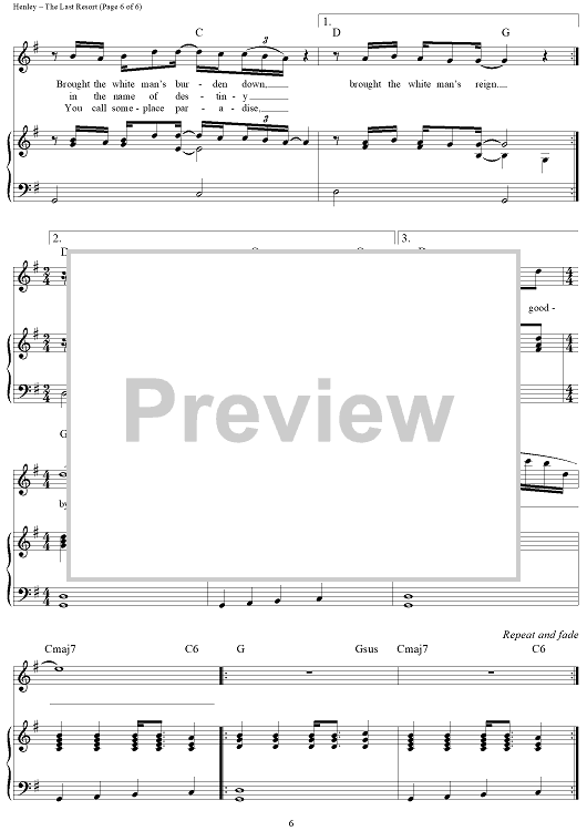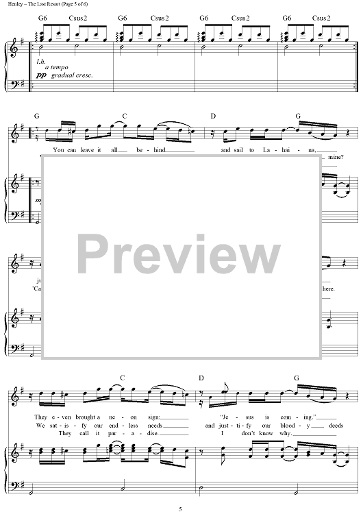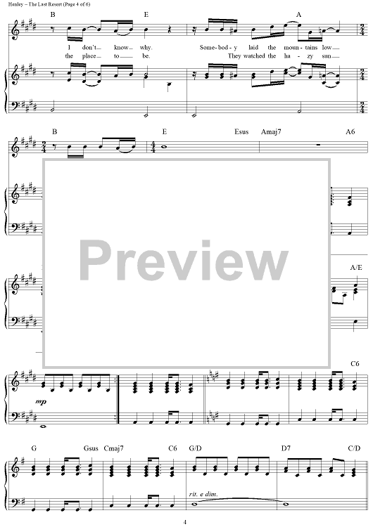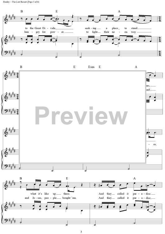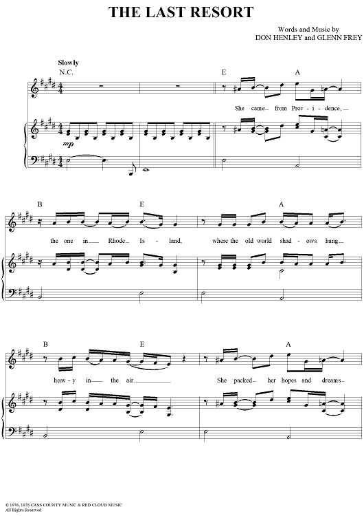 Digital Sheet Music for The Last Resort by Don Henley, Glenn Frey, Eagles scored for Piano/Vocal/Chords; id:113316