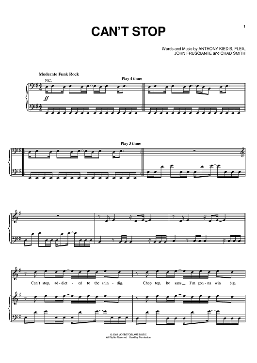 Digital Sheet Music for Can't Stop by Flea, John Frusciante, Anthony Kiedis, Red Hot Chili Peppers scored for Piano/Vocal/Chords; id:371421