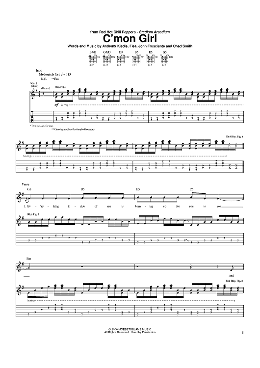 Digital Sheet Music for C'Mon Girl by Flea, John Frusciante, Anthony Kiedis, Red Hot Chili Peppers, Chad Smith scored for Guitar Tab; id:391491