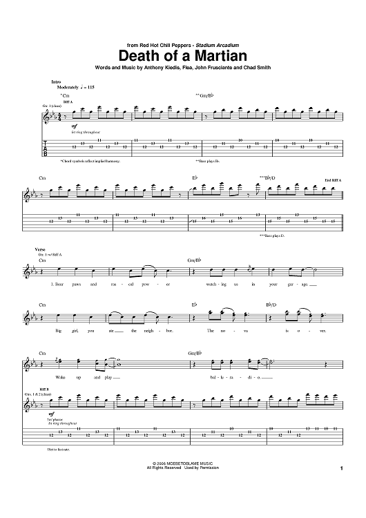 Digital Sheet Music for Death Of A Martian by Flea, John Frusciante, Anthony Kiedis, Red Hot Chili Peppers, Chad Smith scored for Guitar Tab; id:391494