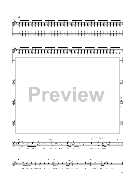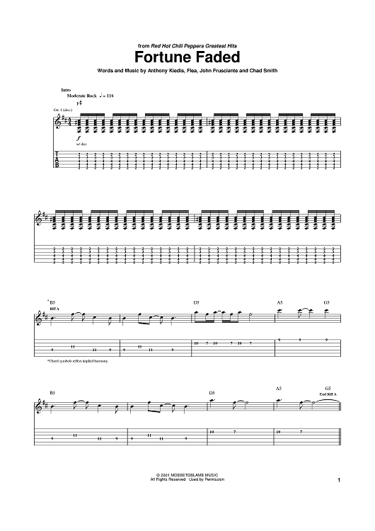 Digital Sheet Music for Fortune Faded by Flea, John Frusciante, Anthony Kiedis, Red Hot Chili Peppers scored for Guitar Tab; id:373987