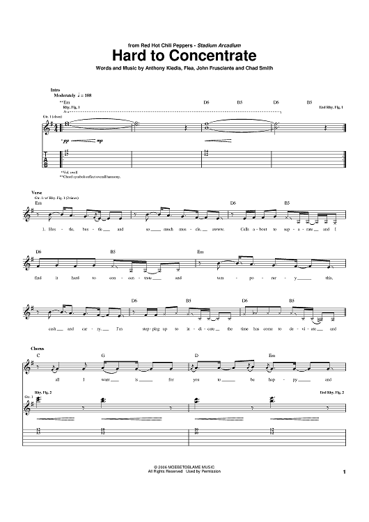 Digital Sheet Music for Hard To Concentrate by Flea, John Frusciante, Anthony Kiedis, Red Hot Chili Peppers, Chad Smith scored for Guitar Tab; id:391497
