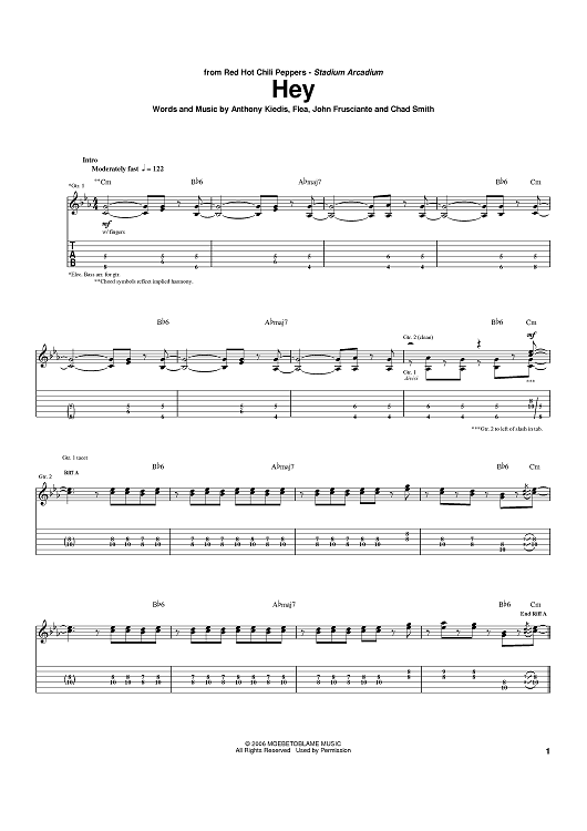 Digital Sheet Music for Hey by Flea, John Frusciante, Anthony Kiedis, Red Hot Chili Peppers, Chad Smith scored for Guitar Tab; id:391498