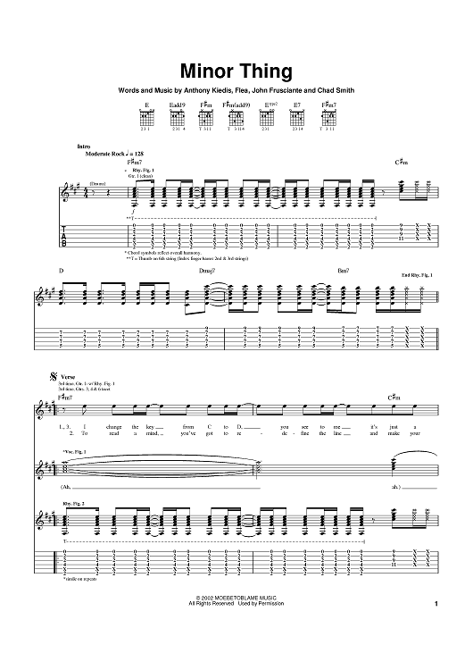 Digital Sheet Music for Minor Thing by Flea, John Frusciante, Anthony Kiedis, Red Hot Chili Peppers scored for Guitar Tab; id:370305