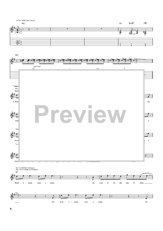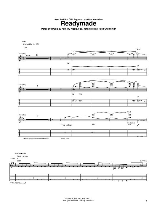 Digital Sheet Music for Readymade by Flea, John Frusciante, Anthony Kiedis, Red Hot Chili Peppers, Chad Smith scored for Guitar Tab; id:391502