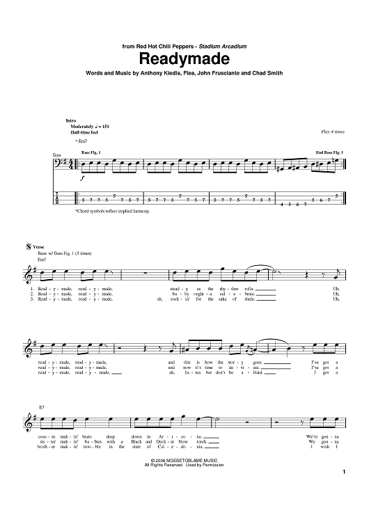 Digital Sheet Music for Readymade by Flea, John Frusciante, Anthony Kiedis, Red Hot Chili Peppers, Chad Smith scored for Bass Tab; id:391996