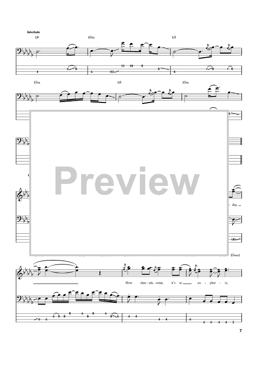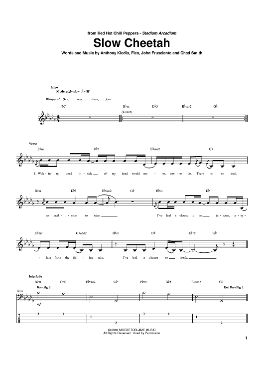 Digital Sheet Music for Slow Cheetah by Flea, John Frusciante, Anthony Kiedis, Red Hot Chili Peppers, Chad Smith scored for Bass Tab; id:391999