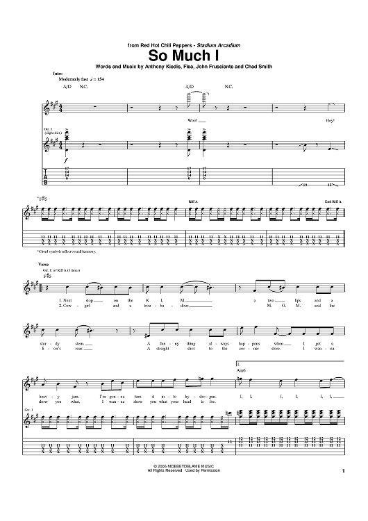 Digital Sheet Music for So Much I by Flea, John Frusciante, Anthony Kiedis, Red Hot Chili Peppers, Chad Smith scored for Guitar Tab; id:391507