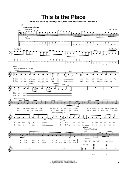 Digital Sheet Music for This Is The Place by Flea, John Frusciante, Anthony Kiedis, Red Hot Chili Peppers scored for Bass Tab; id:372156