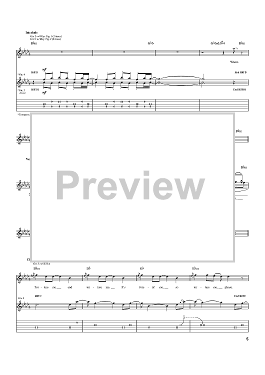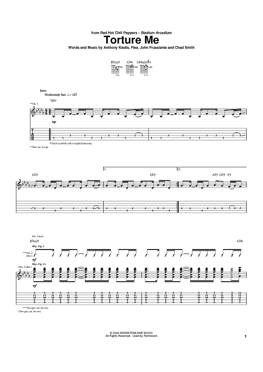 Digital Sheet Music for Torture Me by Flea, John Frusciante, Anthony Kiedis, Red Hot Chili Peppers, Chad Smith scored for Guitar Tab; id:391512