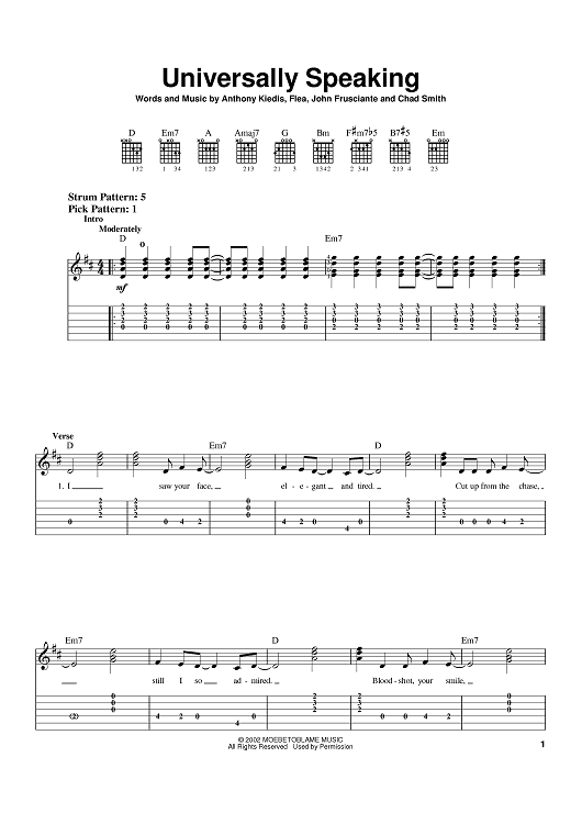 Digital Sheet Music for Universally Speaking by Flea, John Frusciante, Anthony Kiedis, Red Hot Chili Peppers scored for Easy Guitar Tab; id:374611