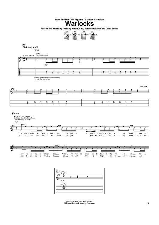 Digital Sheet Music for Warlocks by Flea, John Frusciante, Anthony Kiedis, Red Hot Chili Peppers, Chad Smith scored for Guitar Tab; id:391514