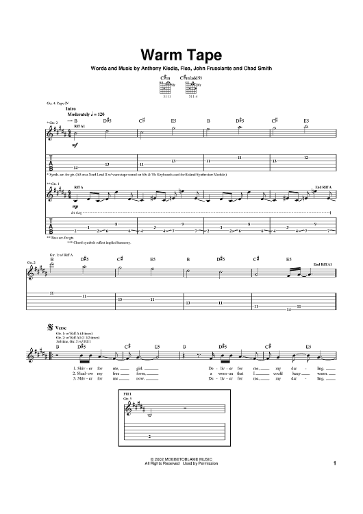 Digital Sheet Music for Warm Tape by Flea, John Frusciante, Anthony Kiedis, Red Hot Chili Peppers scored for Guitar Tab; id:370313