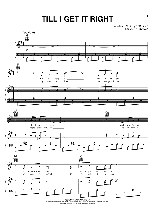 Digital Sheet Music for Till I Get It Right by Larry Henley, Tammy Wynette, Red Lane scored for Piano/Vocal/Chords; id:386553