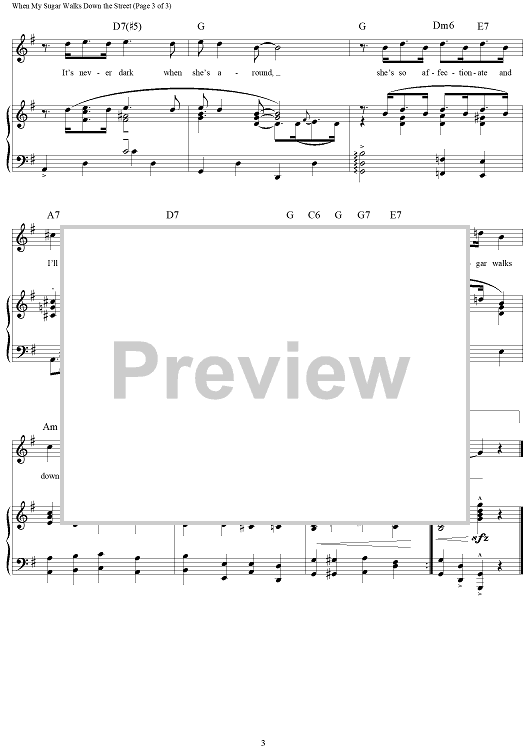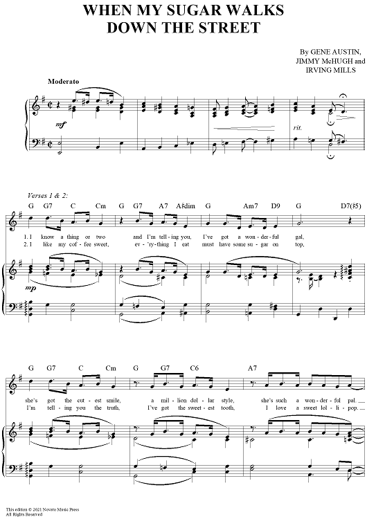 Digital Sheet Music for When My Sugar Walks Down the Street by Irving Mills, Nat King Cole, Johnny Mathis, Ella Fitzgerald, Jimmy McHugh, Gene Austin, Red Nichols' Five Pennies, The Four Freshmen scored for Piano/Vocal/Chords; id:154838