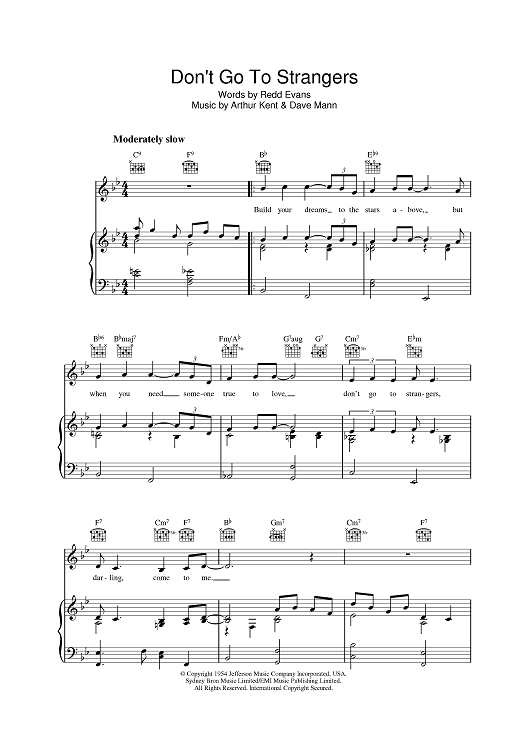 Digital Sheet Music for Don't Go To Strangers by Arthur Kent, Redd Evans, Dave Mann scored for Piano/Vocal/Chords; id:395610