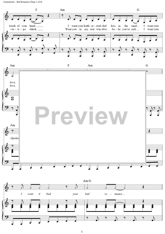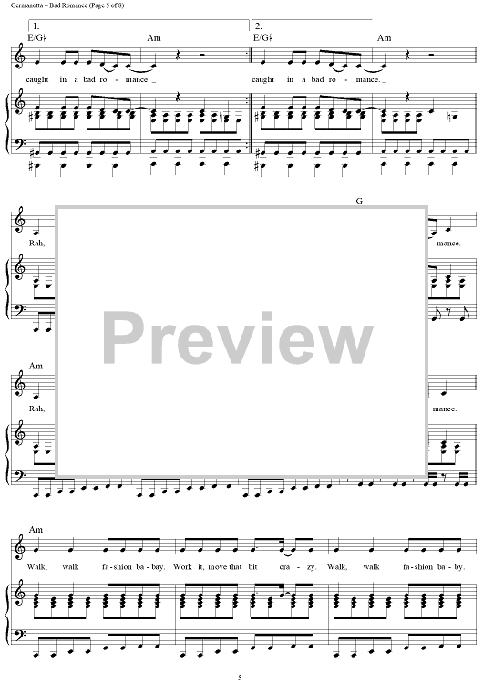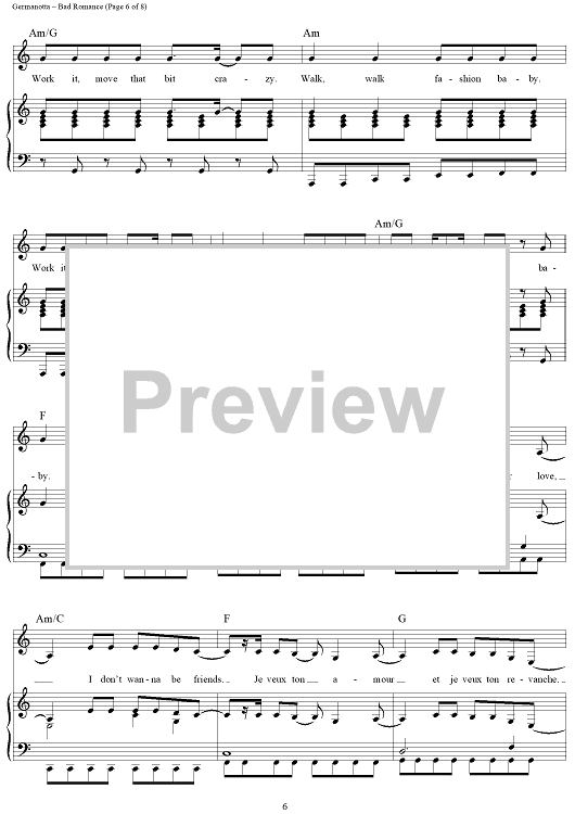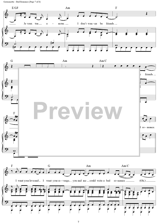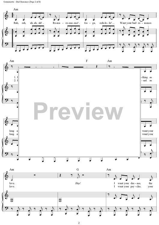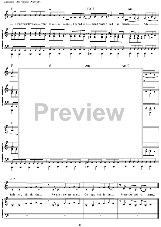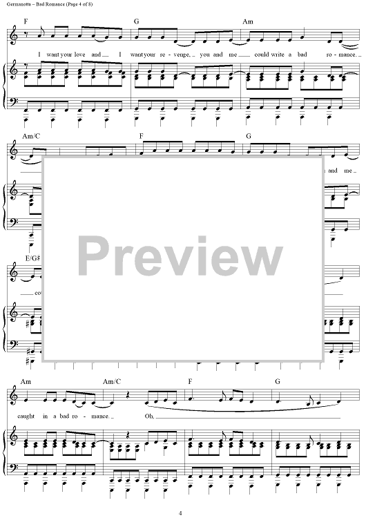 Digital Sheet Music for Bad Romance by Stefani Germanotta, RedOne, Lady Gaga scored for Piano/Vocal/Chords; id:410851