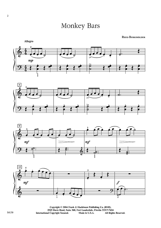"Monkey Bars" Sheet Music by Reed Burkholder