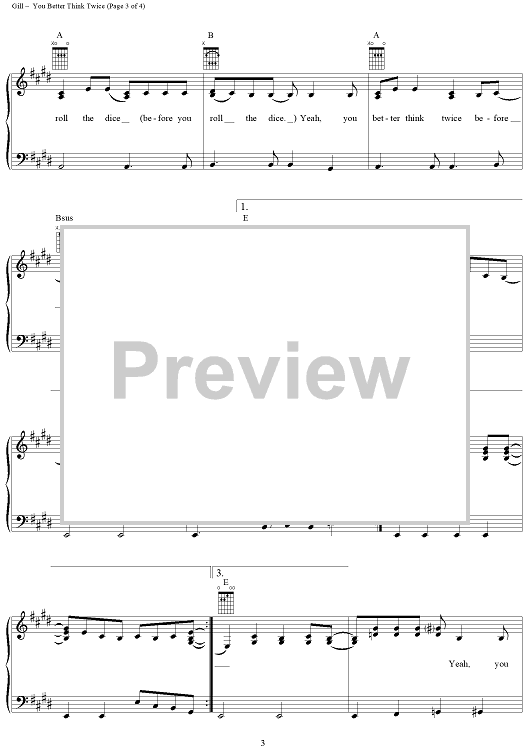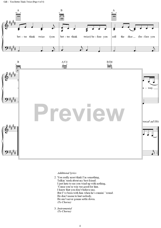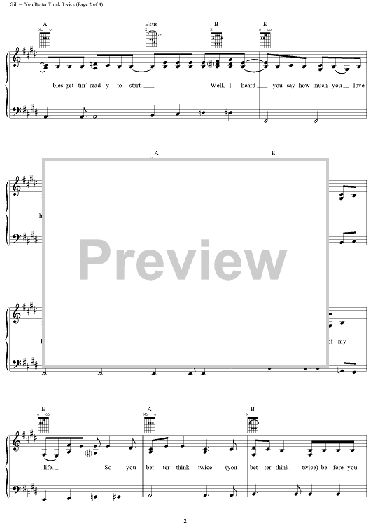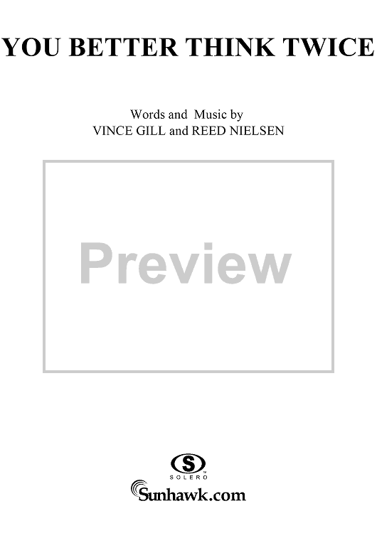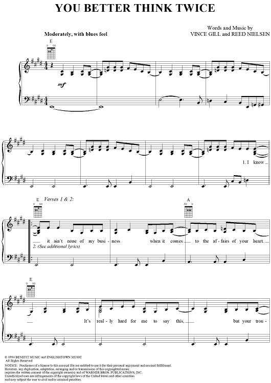 Digital Sheet Music for You Better Think Twice by Vince Gill, Reed Nielsen scored for Piano/Vocal/Chords; id:268017
