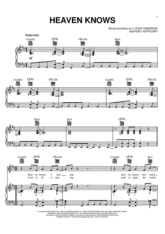 Digital Sheet Music for Heaven Knows by Luther Vandross, Reed Vertelney scored for Piano/Vocal/Chords; id:388802